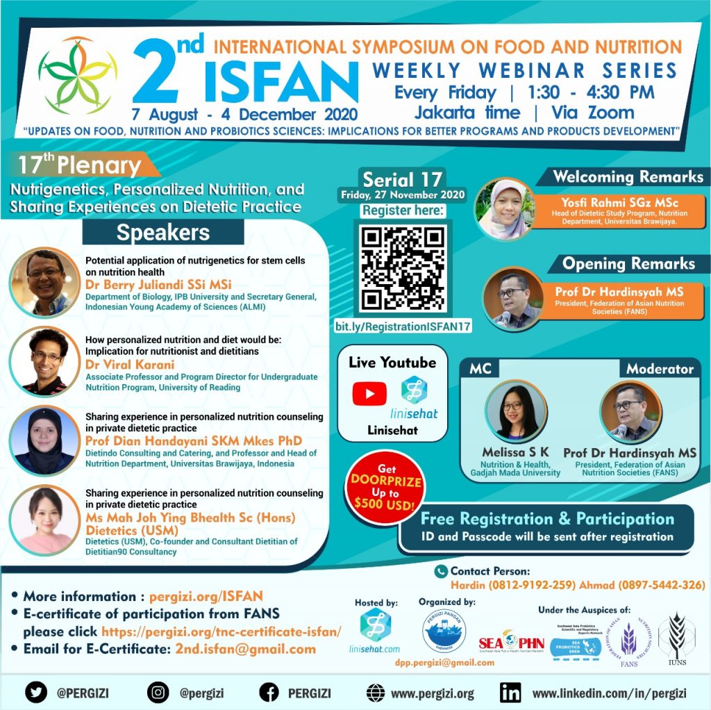 Let’s join the 2nd International Symposium on Food and Nutrition (2nd ISFAN) 2020, every Friday from August to December 2020