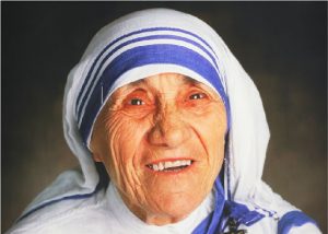 Seorang biarawati yang menghabiskan sebagian besar waktunya di India ini, berhasil mencatatkan namanya sebagai salah satu orang yang paling berpengaruh di dunia. Pada tahun 1950, Teresa mendirikan Missionaries of Charity sebuah kongregasi religius yang memiliki 4500 suster dan aktif di 133 negara hingga 2013. Bentuk kegiatan utamanya adalah pengelolaan rumah bagi mereka yang terkena HIV/AIDS, kusta, dan TBC. Berkat berbagai kontribusinya beliau menerima Nobel Peace Prize pada tahun 1979.