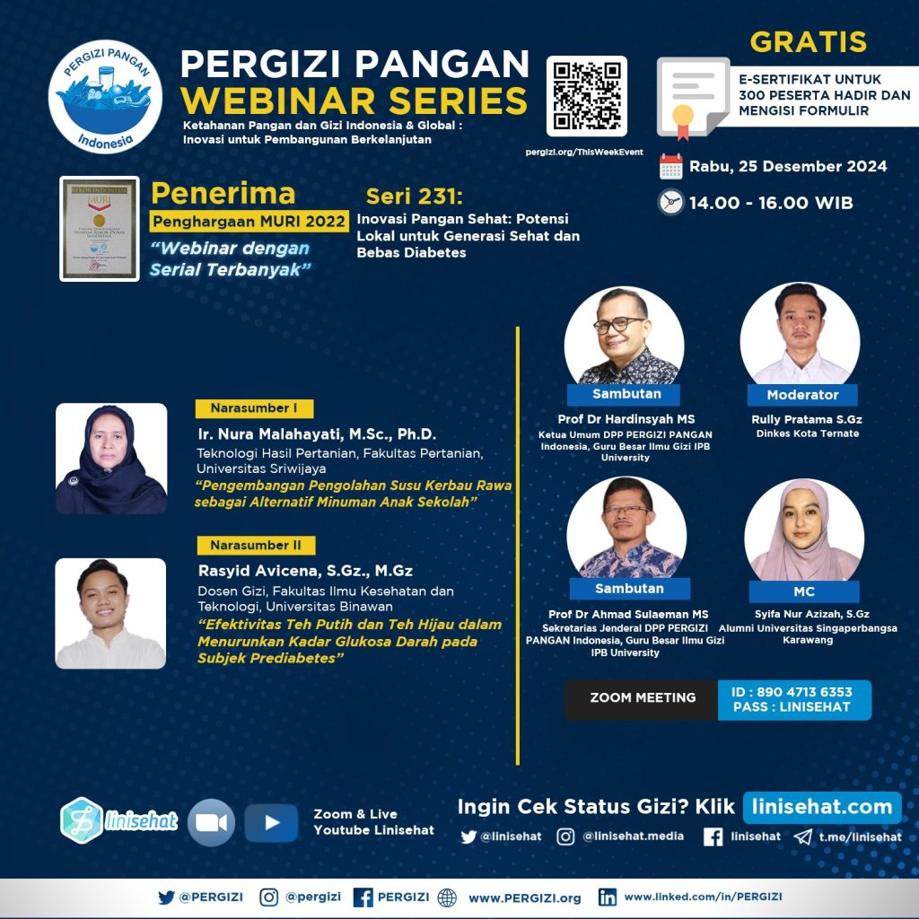 - Prof Dr Hardinsyah MS (Ketua Umum DPP PERGIZI PANGAN Indonesia, Guru Besar Ilmu Gizi IPB University)