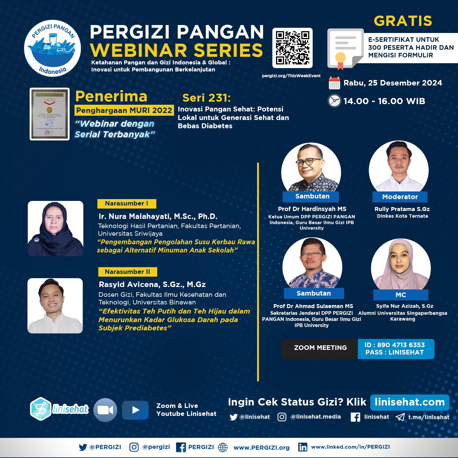 - Prof Dr Ahmad Sulaeman MS (Sekretarias Jenderal DPP PERGIZI PANGAN Indonesia, Guru Besar Ilmu Gizi IPB University)
